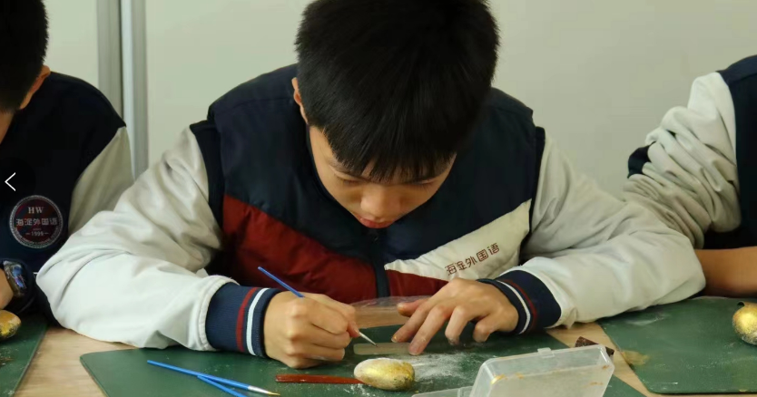 11月30日,远道而来的北京市海淀区外国语学校的同学们来到三星村考古探索基地,体验古蜀文明。
